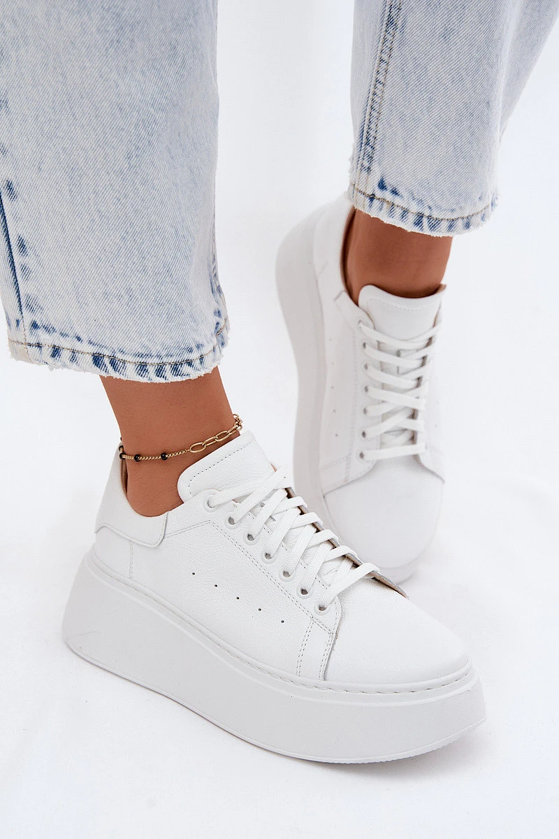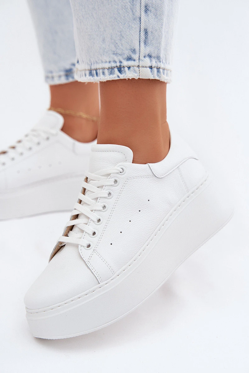Kožené dámské tenisky na platformě Zazoo N408S2 bílé