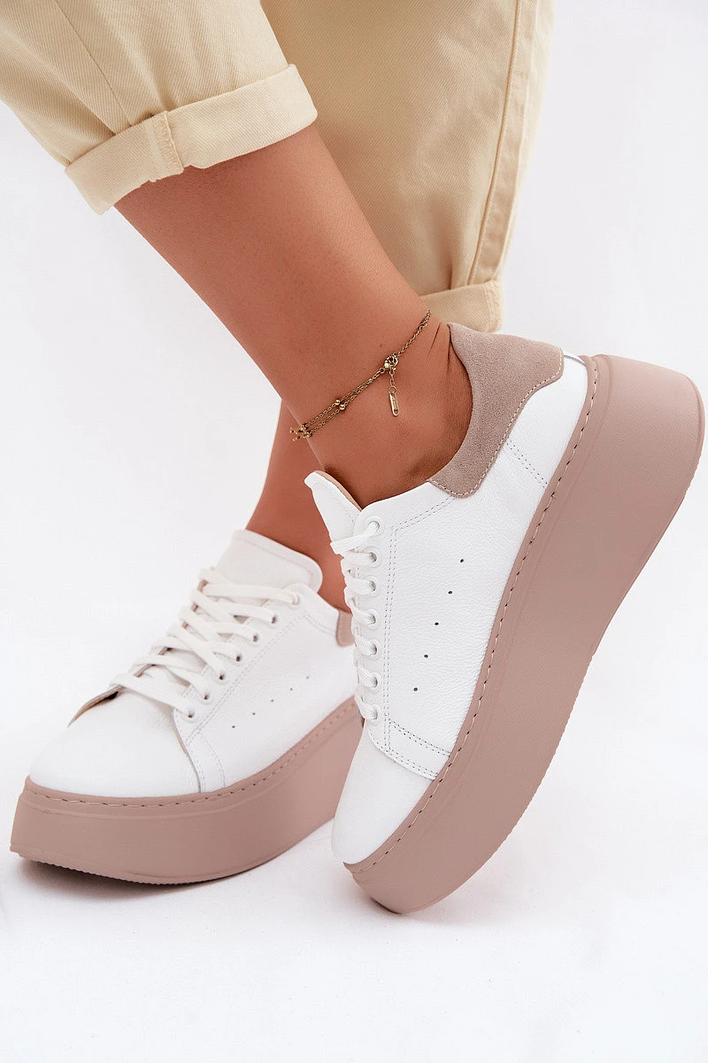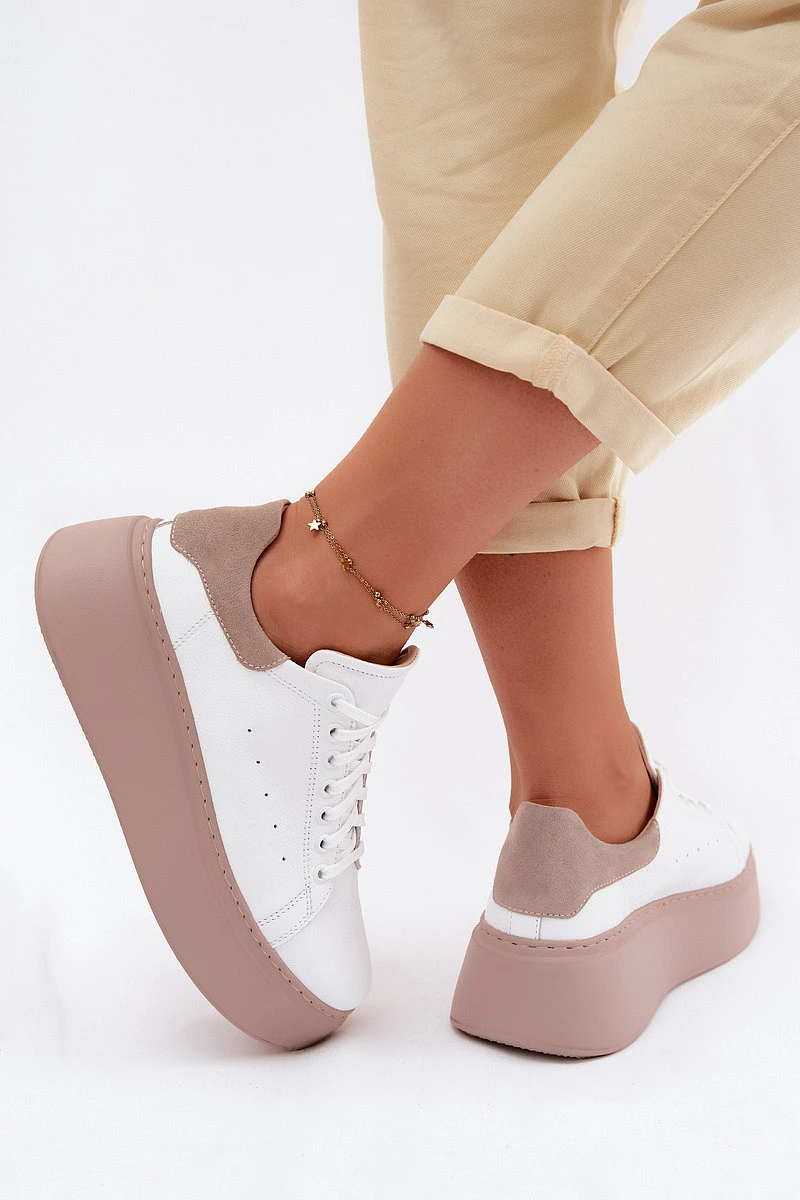 Kožené dámské tenisky na platformě Zazoo N408S2 bílé