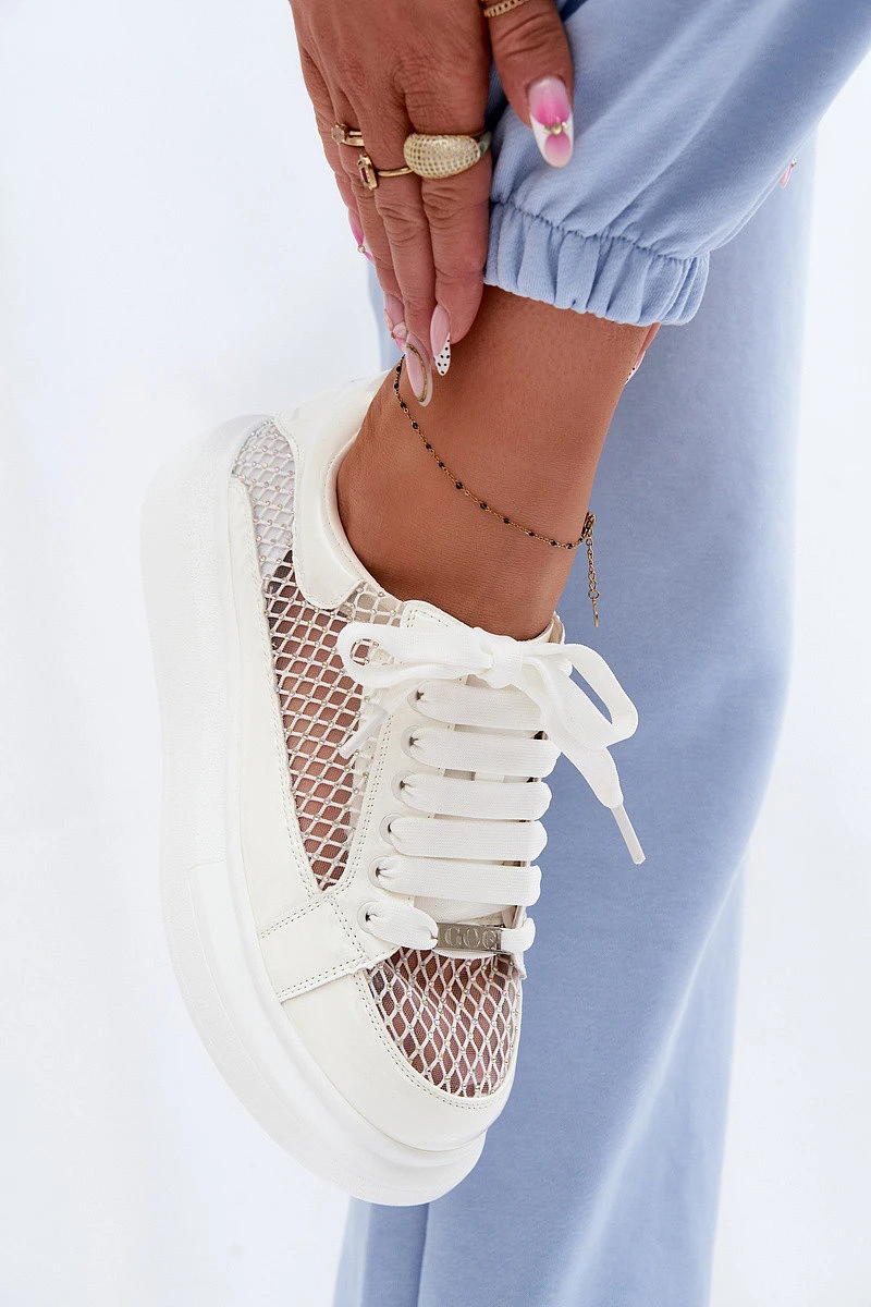 Kožené Dámské Tenisky S Dekorací model 22095158 Bílé - Goe