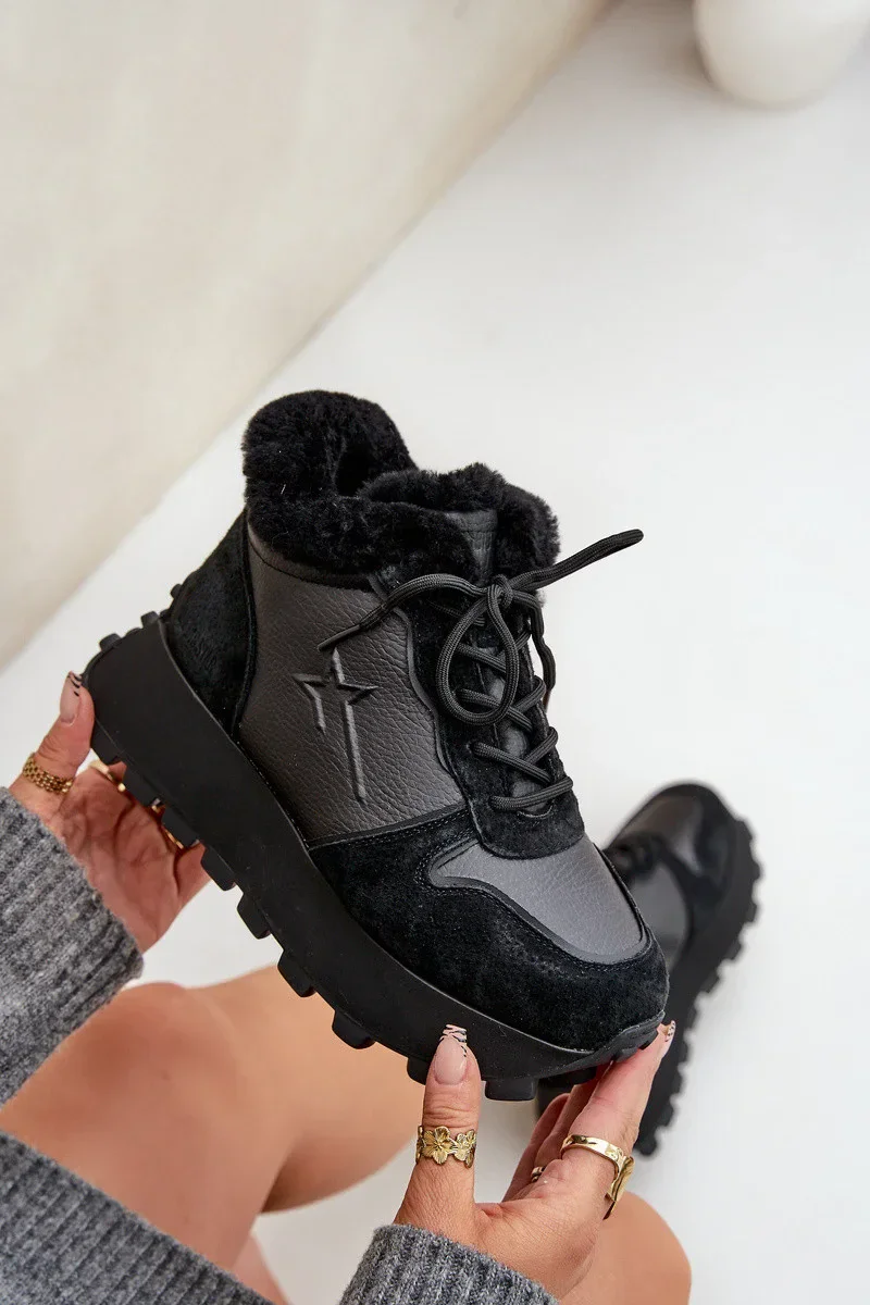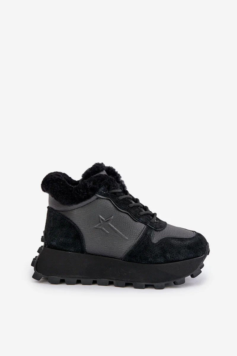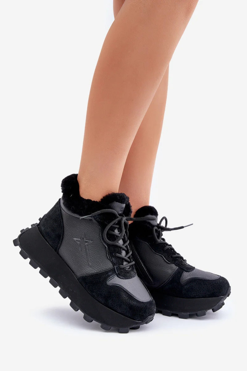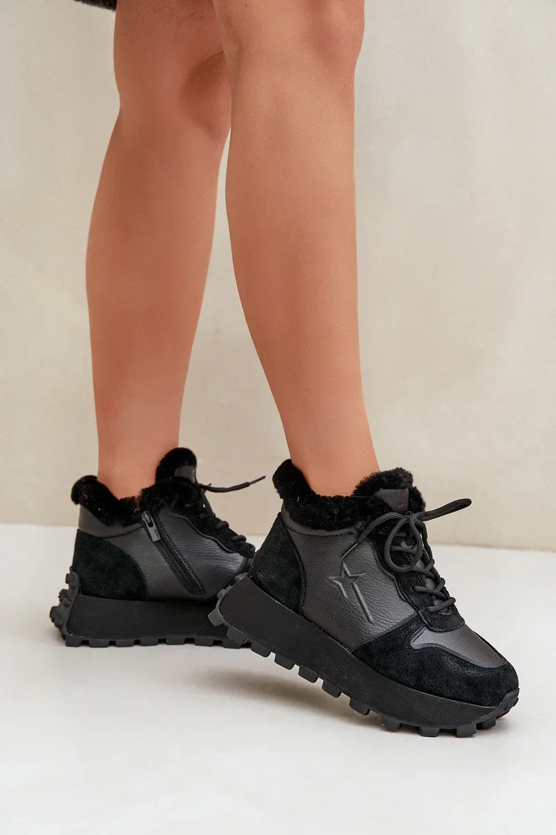 Kožené dámské tenisky trapery s kožešinou na platformě Big Star OO274A329 černé
