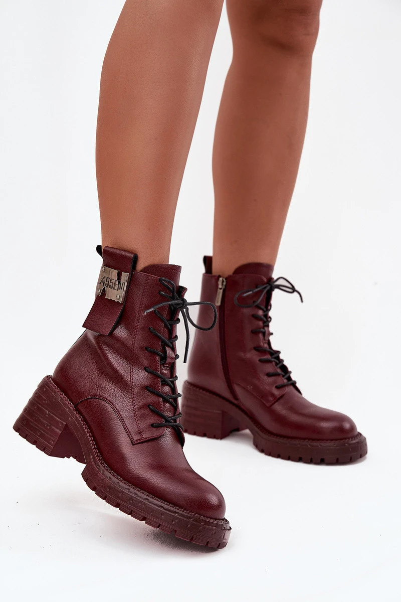 Kožené dámské workery na klíně s ozdobným detailem Artiker 57C0211 bordó