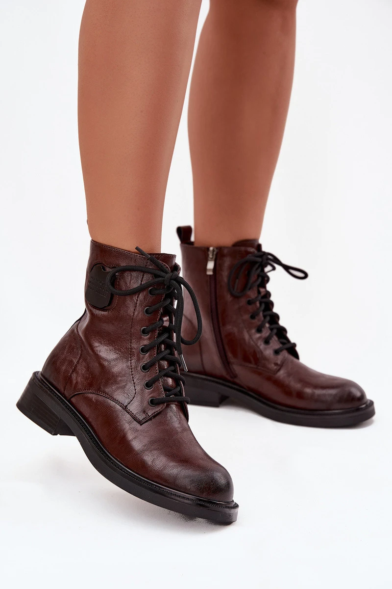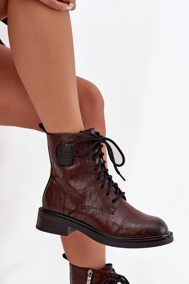 Kožené dámské workery s ozdobným detailem model 21714650 hnědé - Maciejka