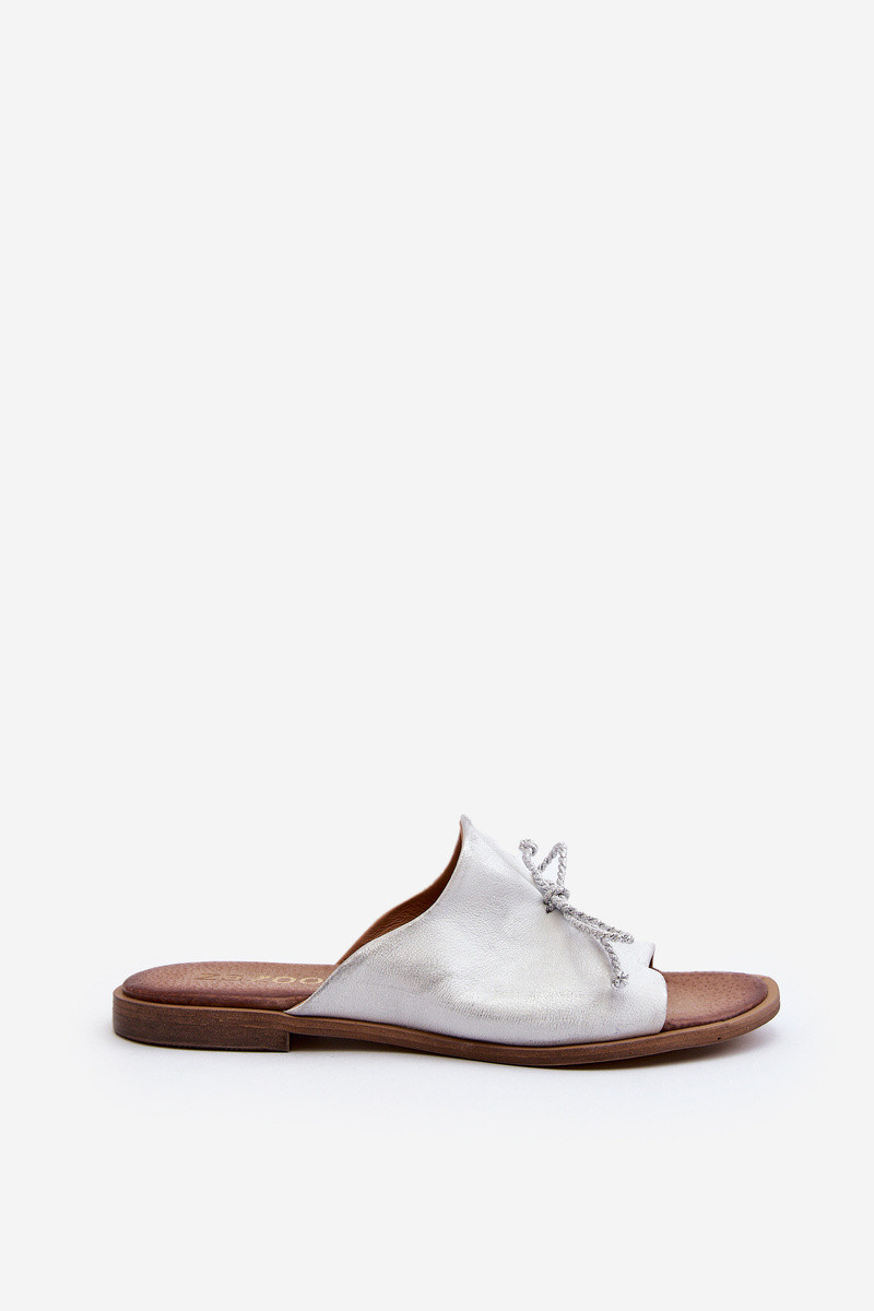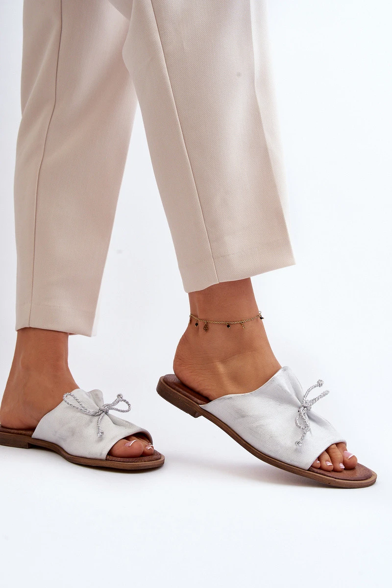 Kožené dámské žabky model 21646105 stříbrné - Zazoo