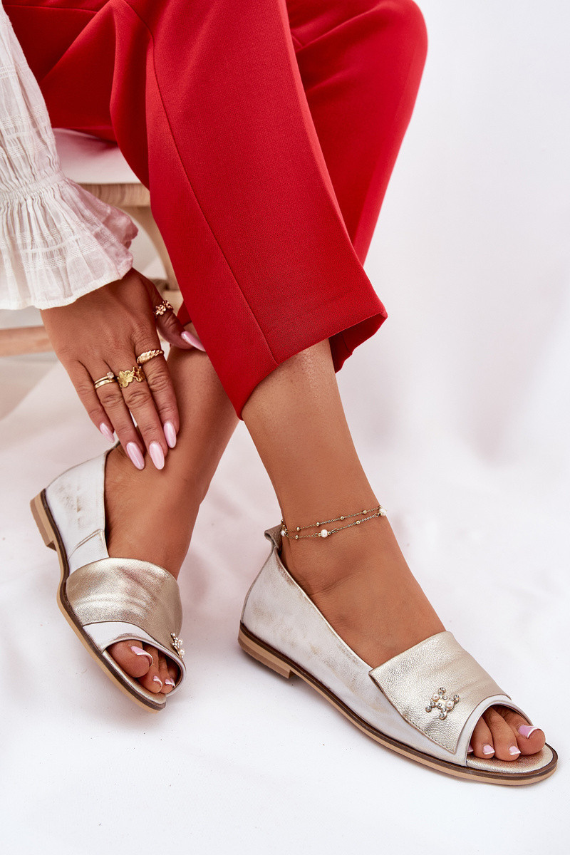 Kožené Elegantní Baletky S Odkrytými Prsty Zazoo 1865 Zlatý Ošoupaný