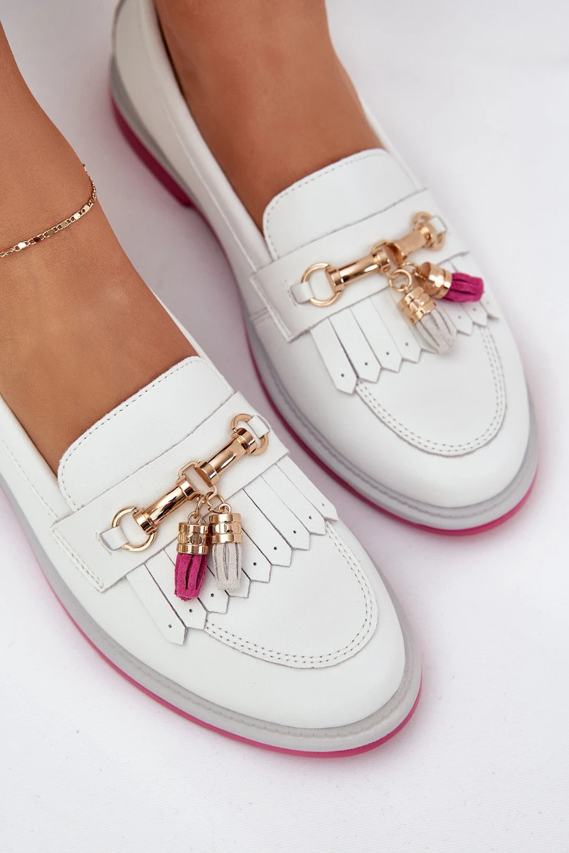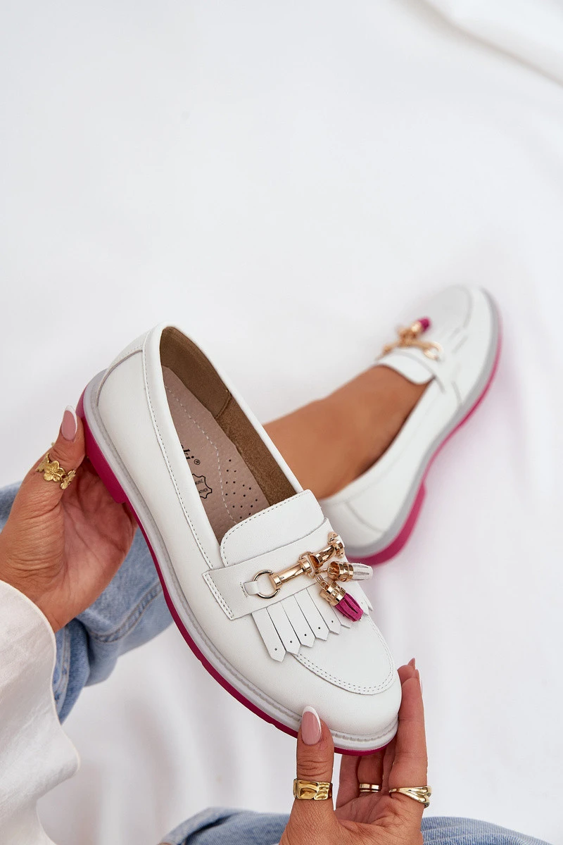 Kožené Elegantní Mokasíny Na Plochém Podpatku model 21686133 Bílé - S.Barski