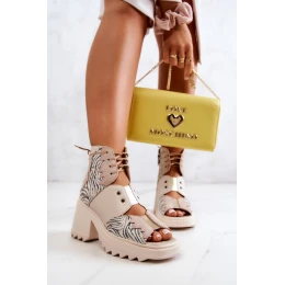 Jedinečné boty od renomované firmy Maciejka. Boty jsou vyrobeny z přírodní kůže a tkaniny. Měkká, kožená stélka zajistí pohodlí v každé situaci. Svršek má zip, který usnadňuje obouvání a zavazování. Boty mají střih pro odhalené prsty. Díky elastickým páskům bude bota perfektně sedět na noze. Masivní podpatek zajistí stabilitu. Při výběru velikosti použijte tabulku velikostí.