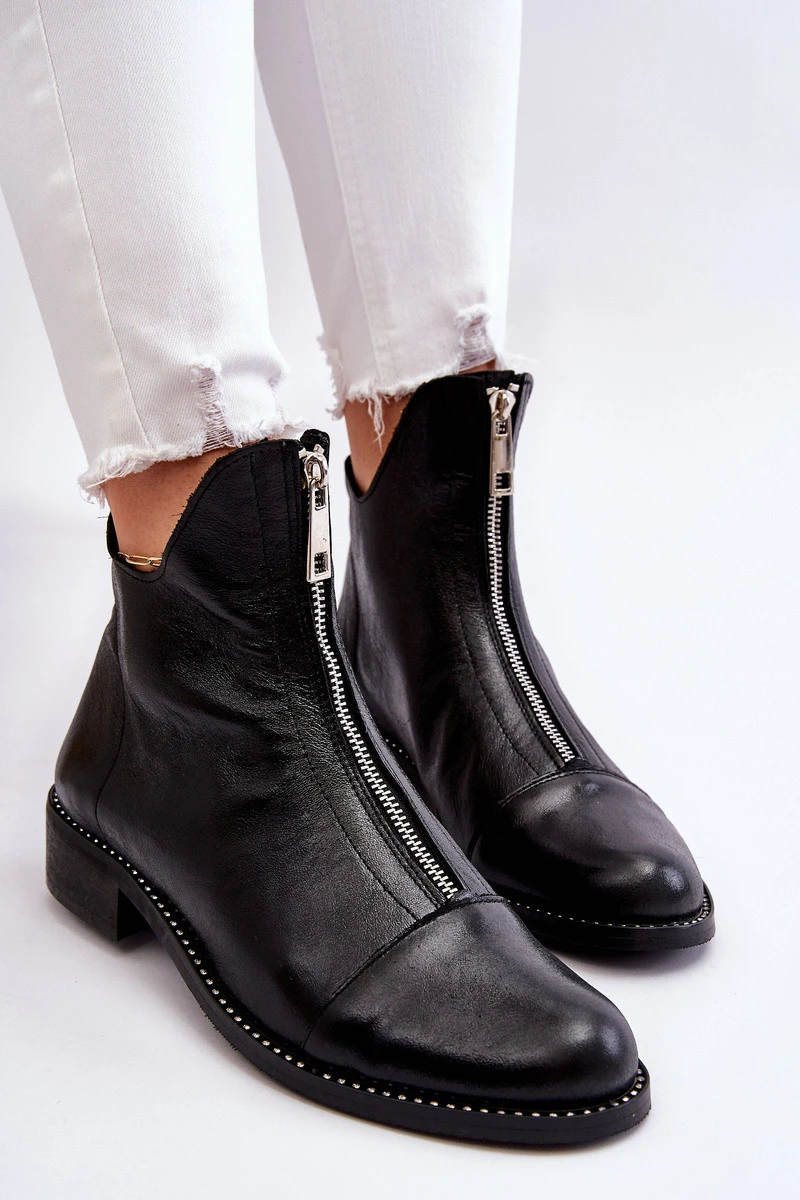Kožené kozačky na zip Nicole 2785/037 Černá