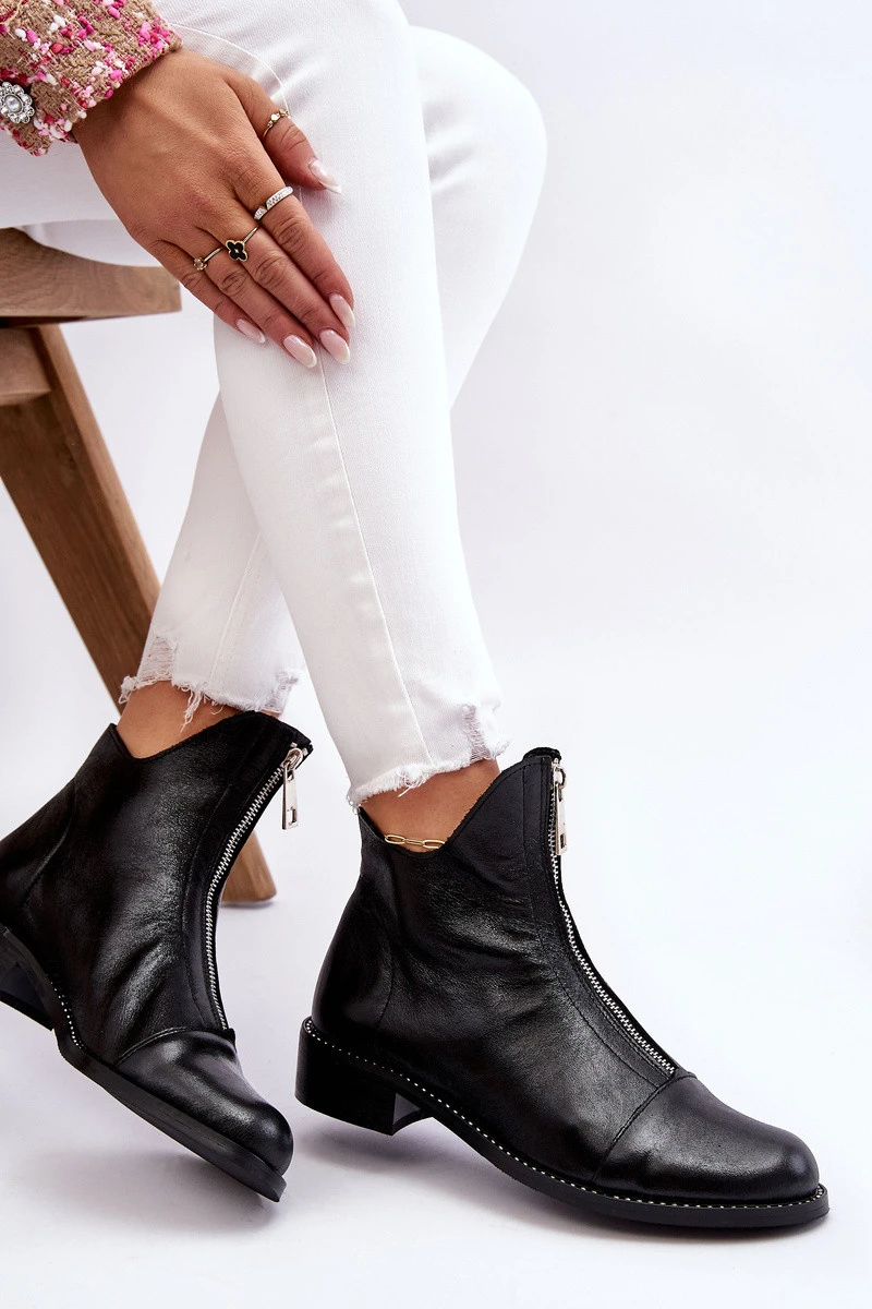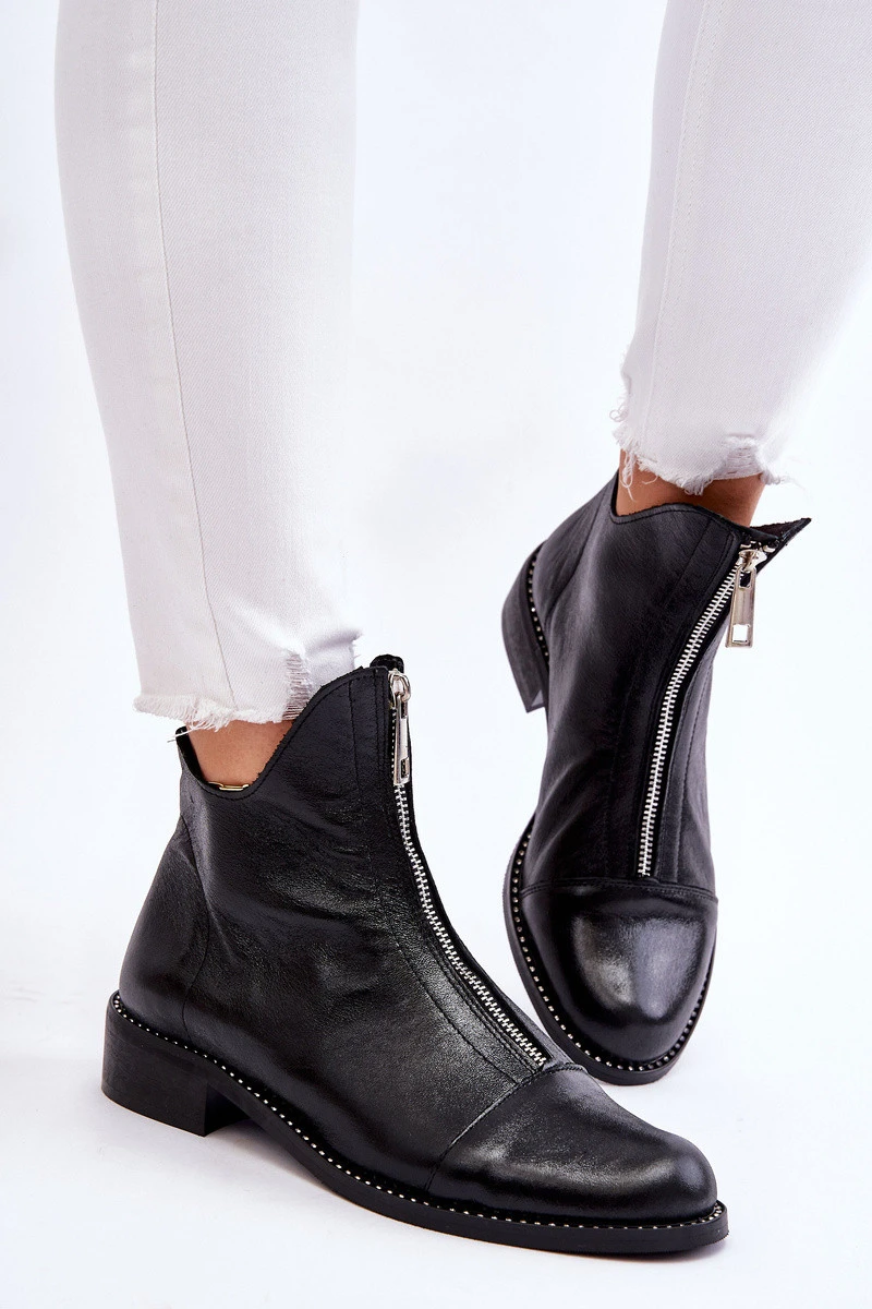 Kožené kozačky na zip Nicole model 21612117 Černá - Zazoo