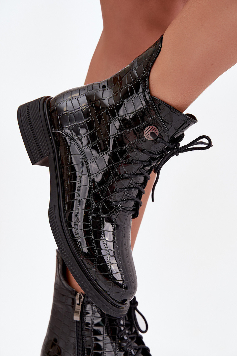 Kožené lakované boty s raženým vzorem vyhřívané černé Juviane