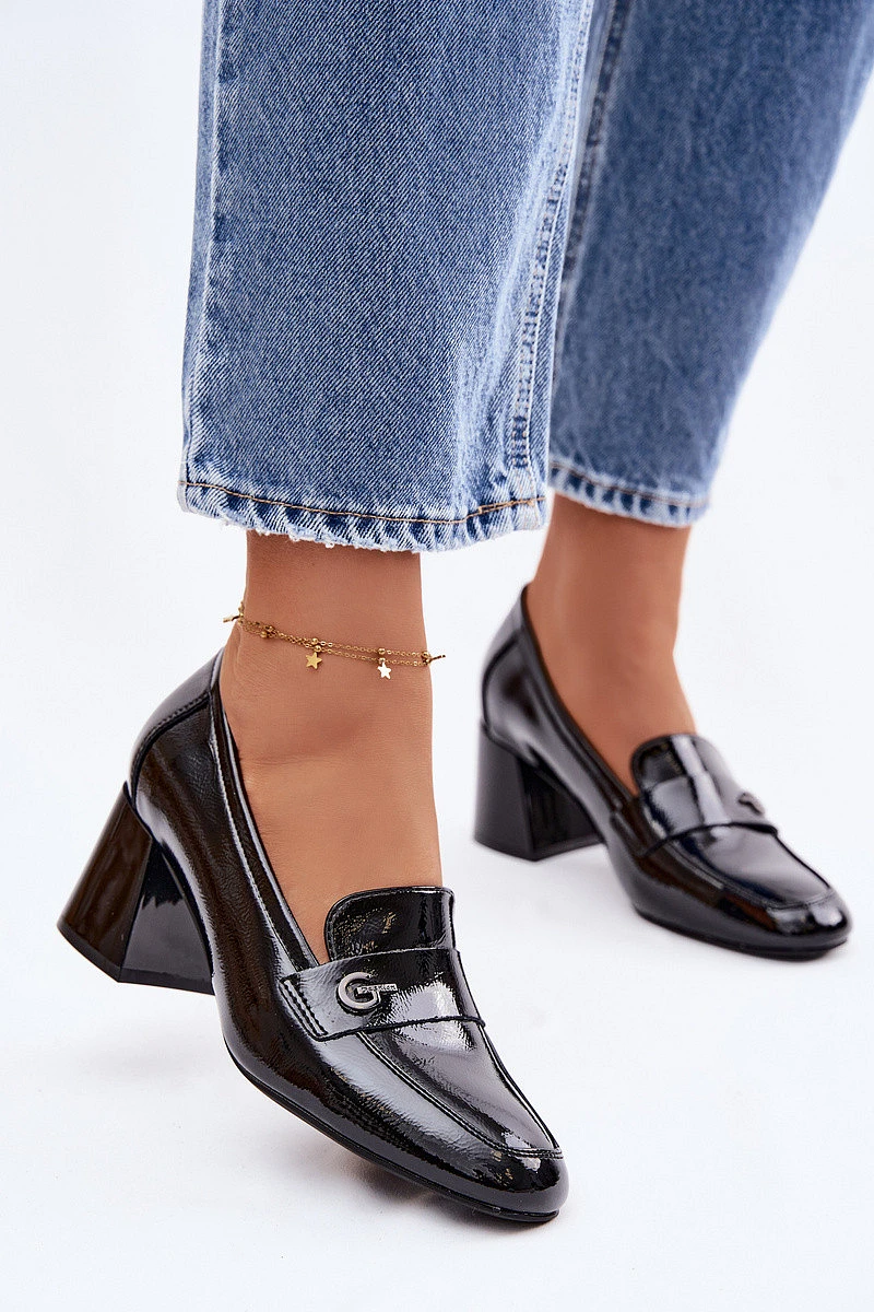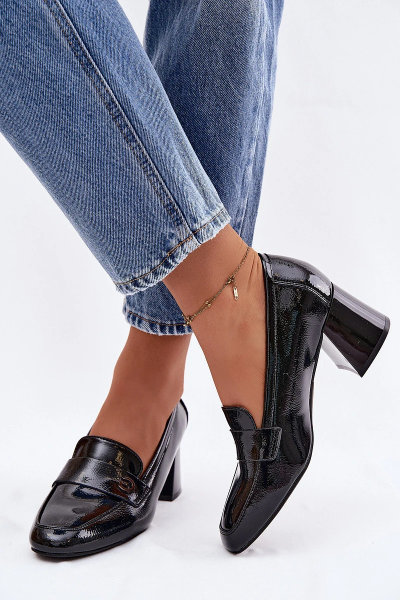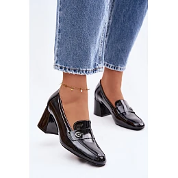 Kožené Lakované Dámské Lodičky na Podpatku model 22100046 Černé - VINCEZA