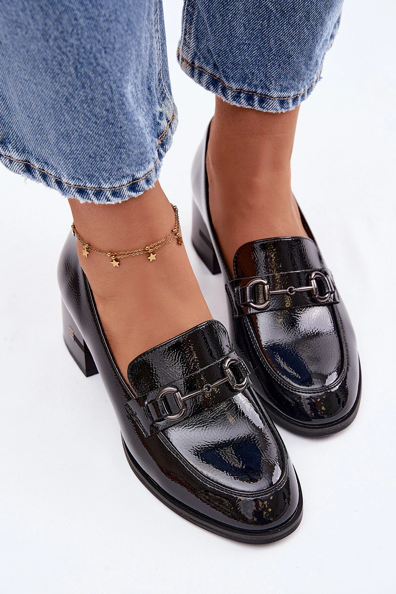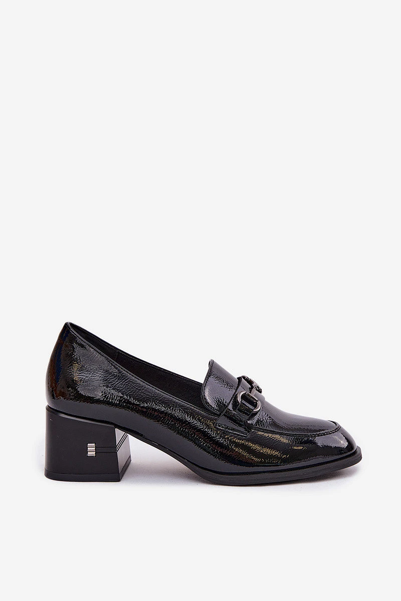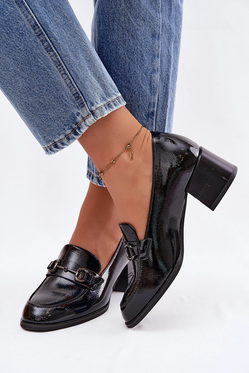 Kožené lakované dámské lodičky na podpatku Vinceza 18116 Černé