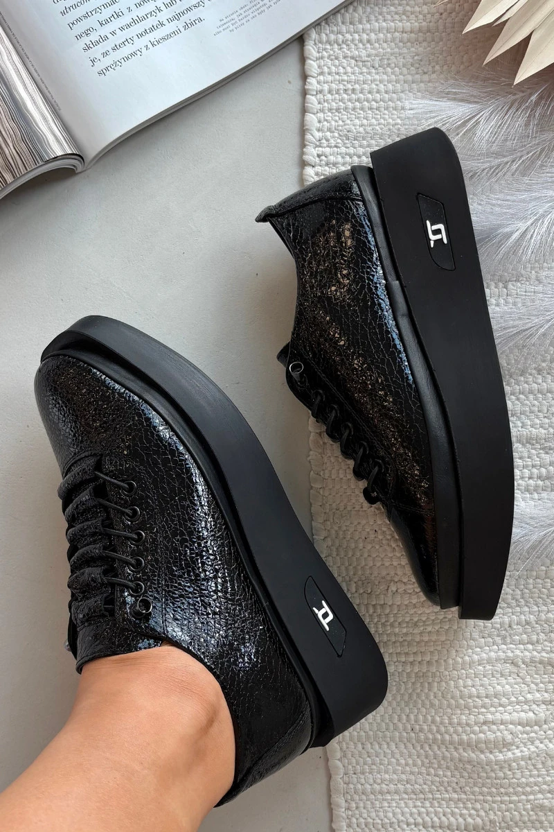 Dámské polobotky značky Artiker vyrobené z lakované přírodní kůže jsou návrhem, který kombinuje eleganci s každodenním pohodlím. Lesklé provedení jim dodává stylový charakter a pevná platforma zajišťuje komfort při nošení a moderní vzhled. Místo tradičních šněrovadel má model elastické gumičky, které napodobují šněrování, čímž získávají originální vzhled a jsou mimořádně praktické – snadno se nazouvají a sundávají. Jsou to polobotky, které se skvěle hodí do městských stylizací, spojují eleganci s nádechem sportovního uvolnění. Při výběru velikosti se řiďte tabulkou velikostí. Při výběru velikosti se řiďte tabulkou velikostí.