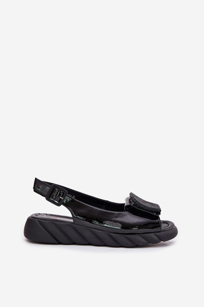 Kožené Lakované Dámské Sandály Na Klínu s Dekorací Černé model 21695653 - Artiker