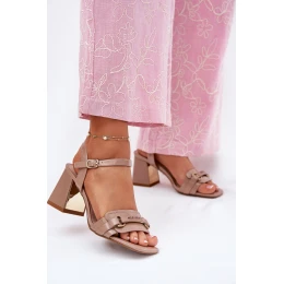 Přidání recenze k Kožené lakované dámské sandály na podpatku béžové model 21696877 - EVENTO