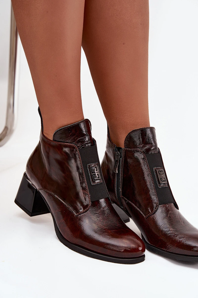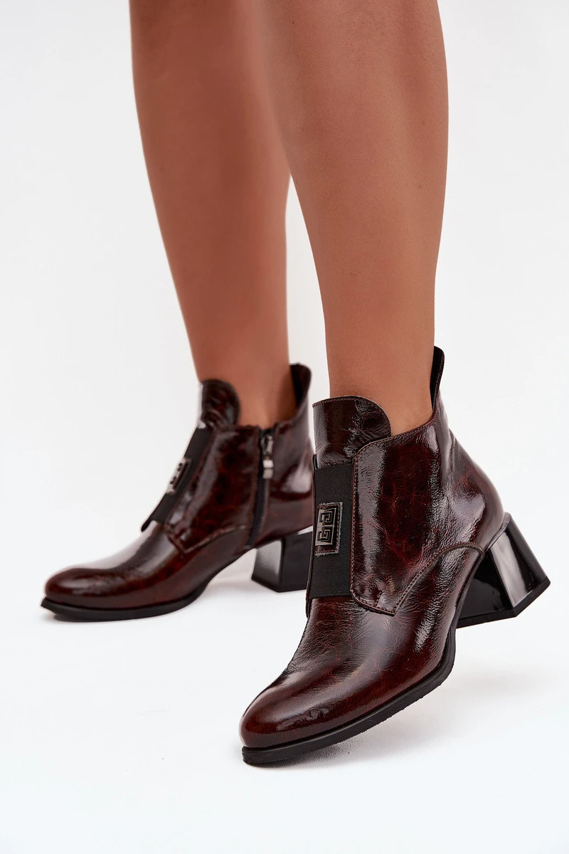 Kožené lakované kotníčkové boty 60560 vínově hnědá - Zazoo