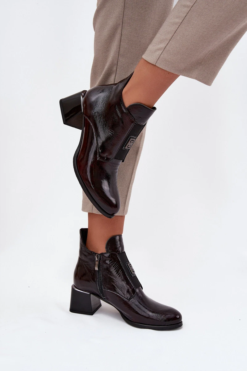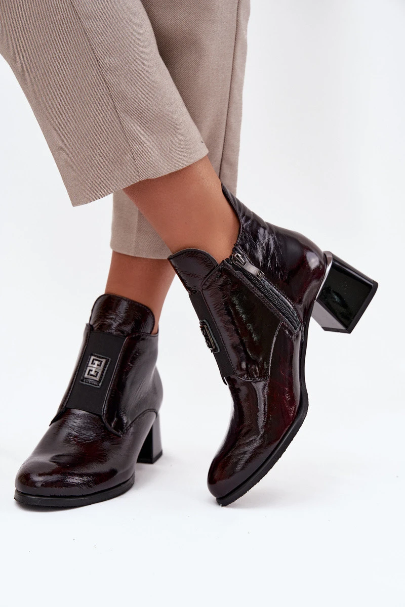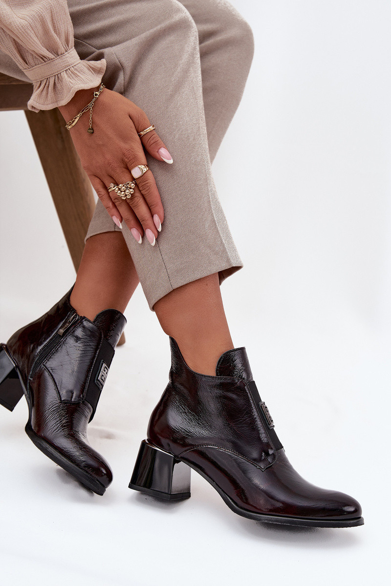 Kožené lakované kotníkové boty na klínku s ozdobným detailem zateplené model 21708543 bordó - Zazoo