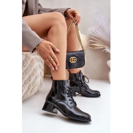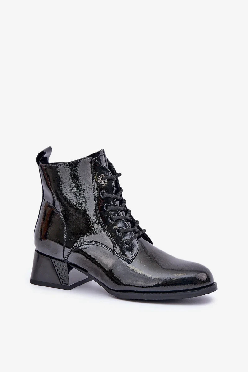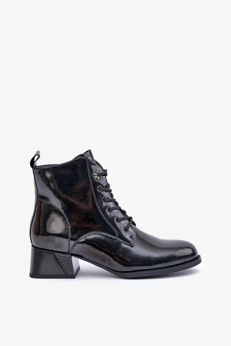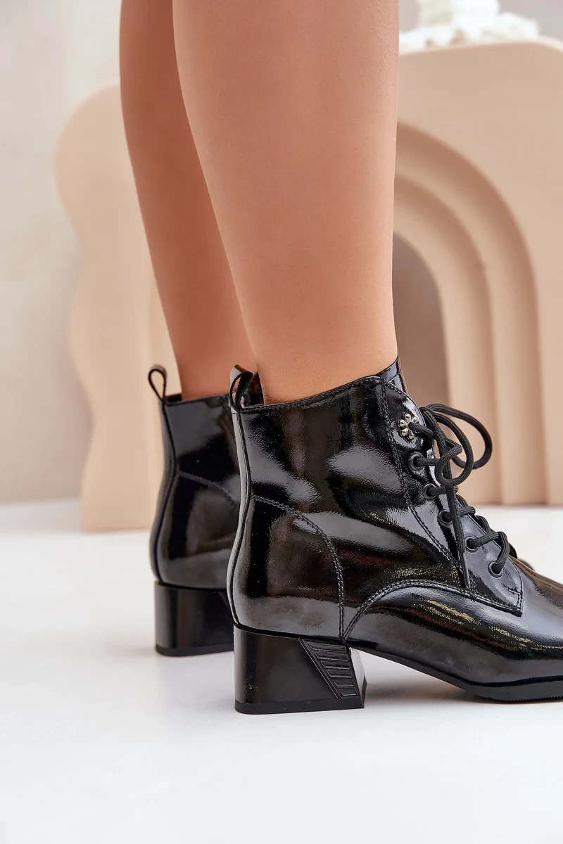 Kožené lakované kotníkové boty na podpatku zateplené D&A JC42-53 černé