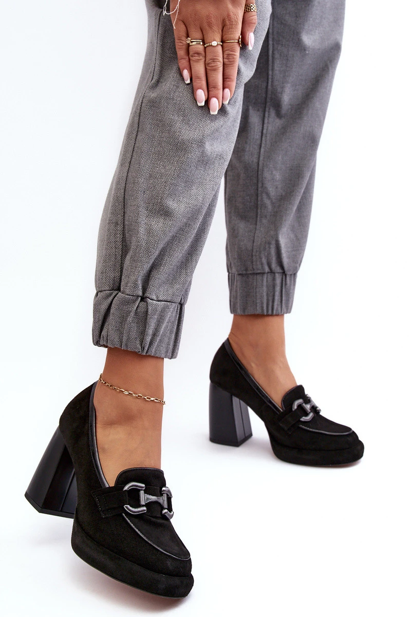 Kožené lodičky na masivním sloupku Laura Messi 2706 černé