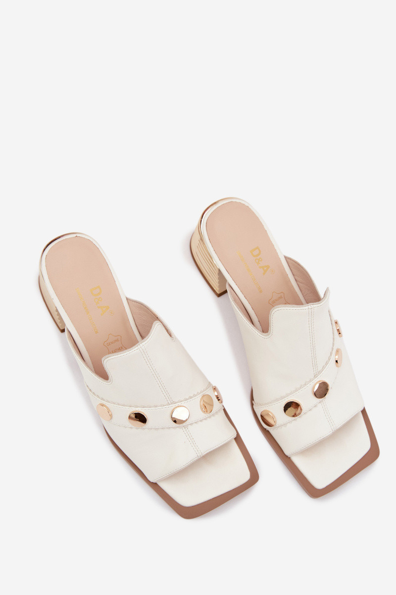 Dámské nazouváky vyrobené z přírodní kůže jsou elegantní volbou pro ženské stylizace. Model na stabilním podpatek typu sloupek zajišťuje pohodlí při chůzi a jemně zvýrazňuje siluetu. Na přední straně je dekorativní páska, která dodává stylový akcent, a široké, čtvercové špičky jim dodávají moderní vzhled a zvyšují pohodlí prstů. Jsou to stylové nazouváky, které se skvěle hodí na slavnostní příležitosti, důležitá setkání a do elegantních pracovních outfitů. Při výběru velikosti se řiďte tabulkou velikostí.