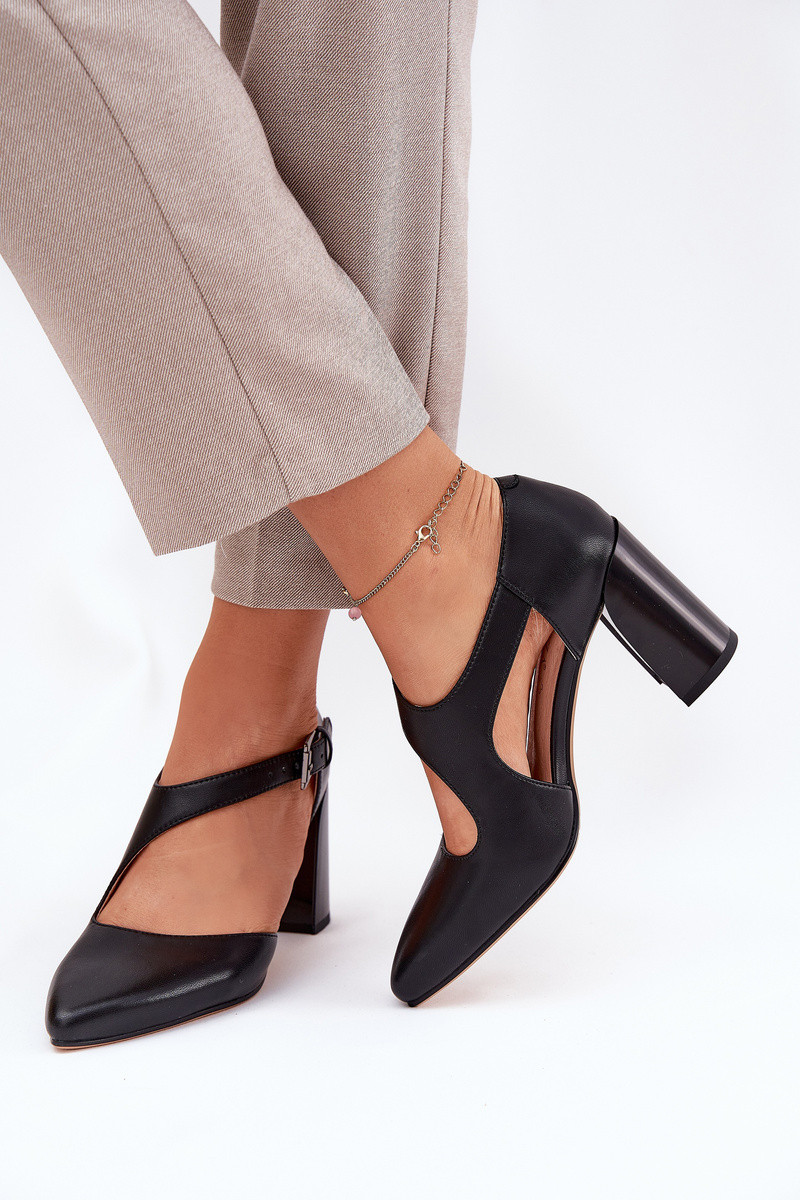 Kožené Lodičky Na Podpatku S Přezkou Vinceza 91133 Černé