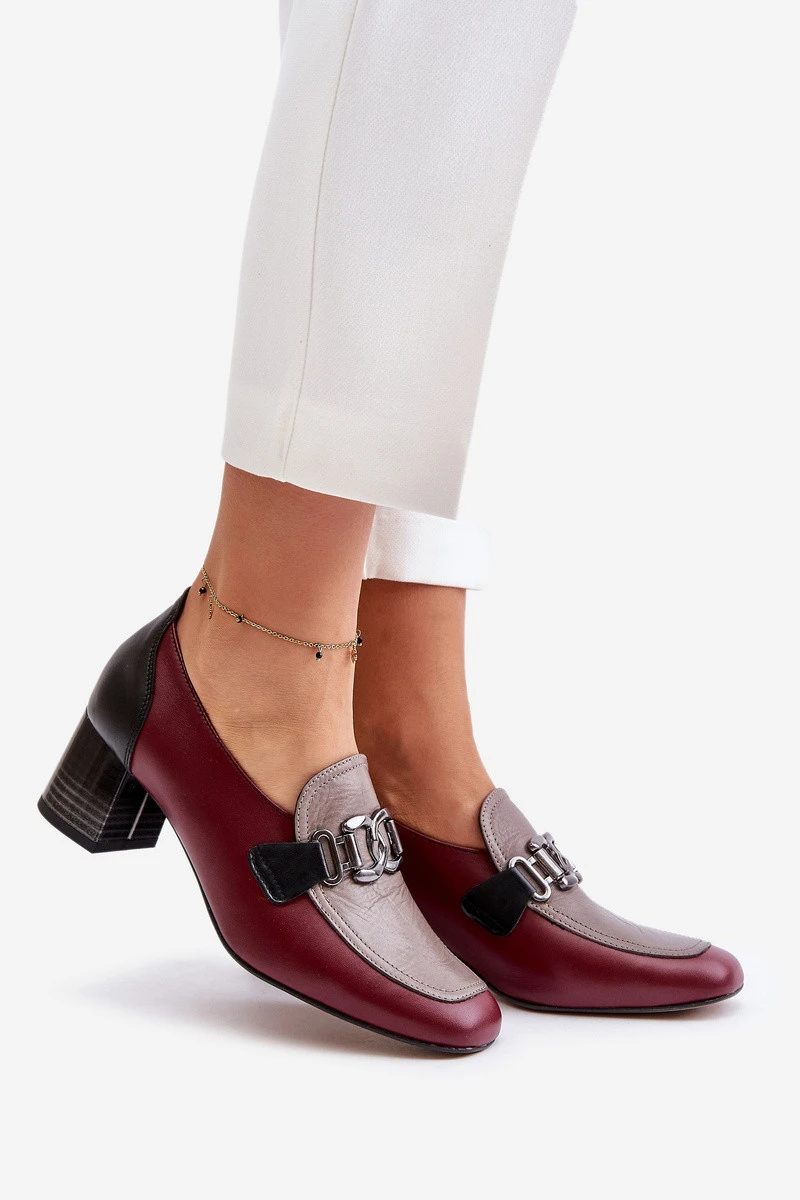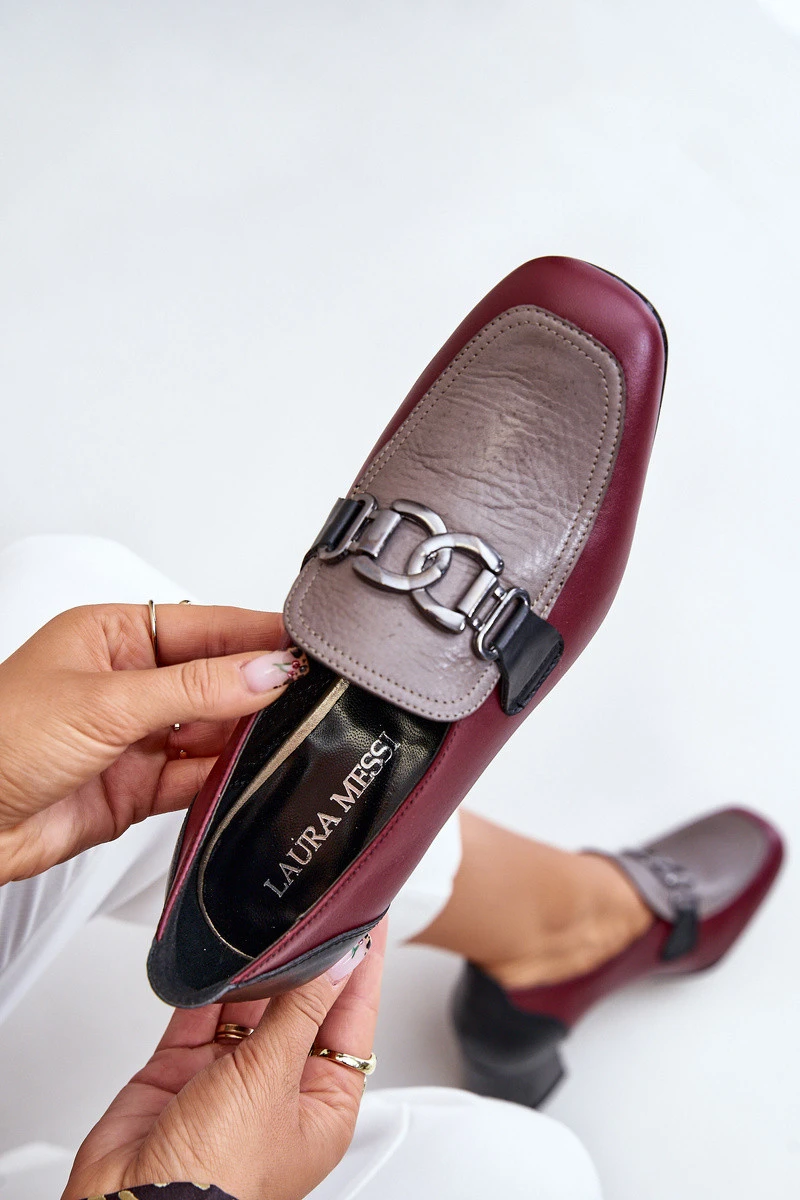 Kožené lodičky na podpatku se zlatou ozdobou Laura Messi 2861 bordové