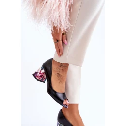 Kožené lodičky s ozdobným podpatkem Leski Boty 2608/K Černá