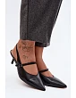 Kožené Lodičky Sandály na Podpatku S Páskem D&A CR61-3046 Černé