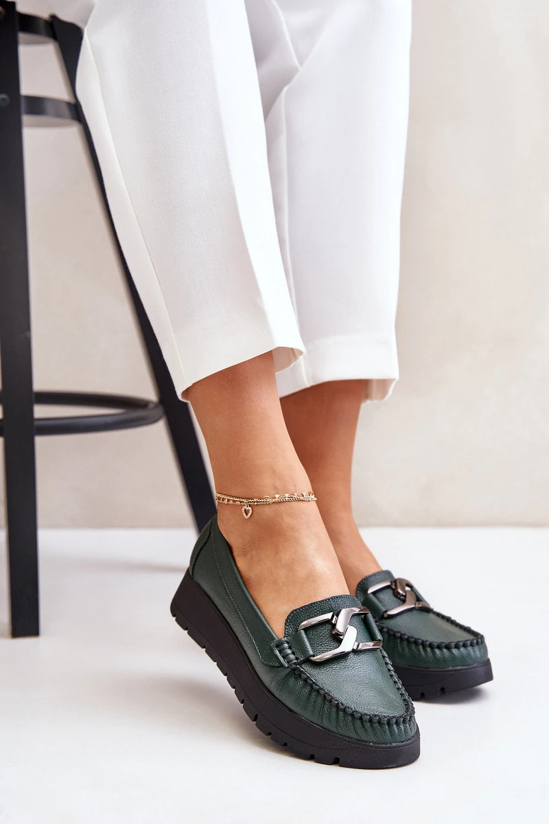 Kožené mokasíny na platformě s ozdobou tmavě zelené Zazoo 10141