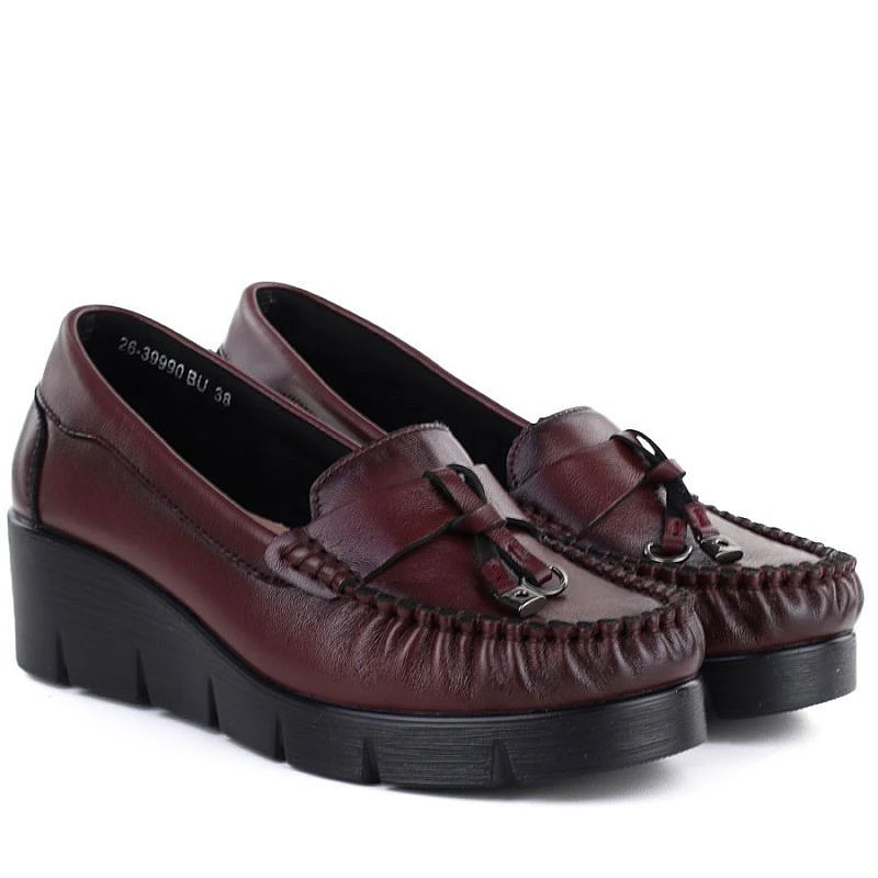 Kožené mokasíny polobotky na platformách vínové Vinceza 39990