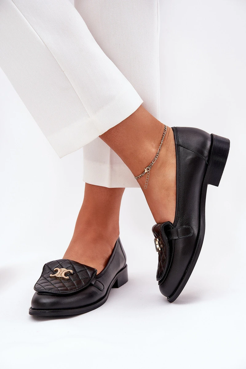 Kožené mokasíny se zlatou ozdobou černé model 21686509 - Laura Messi