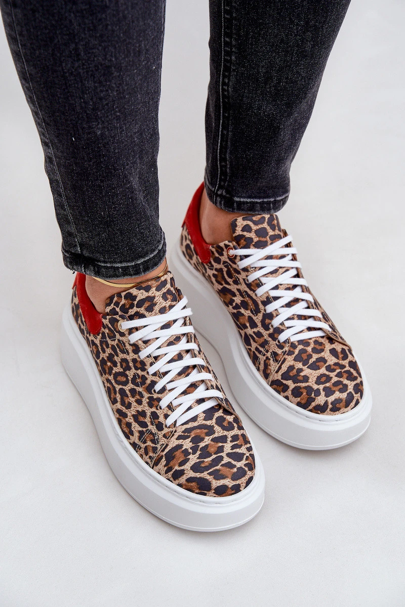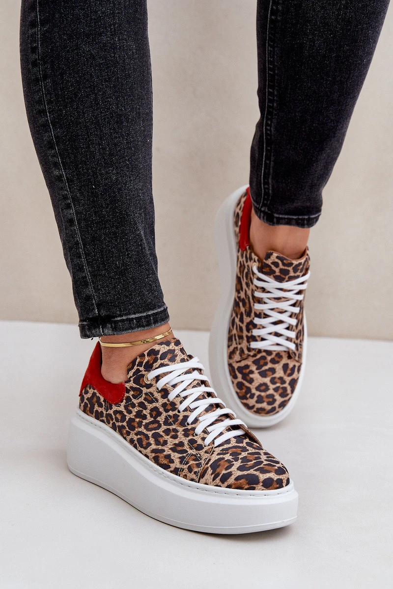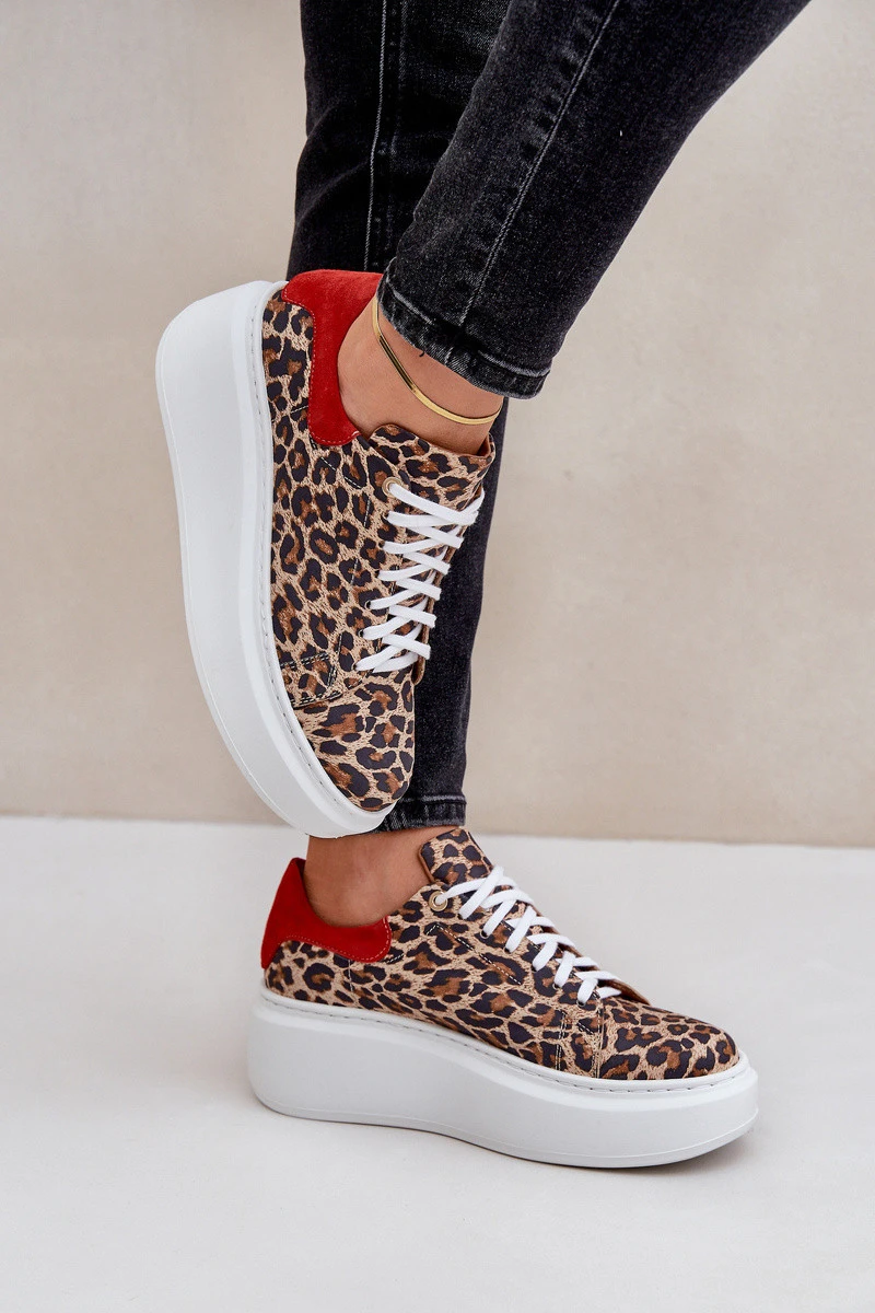 Tenisky vyrobené z přírodní kůže jsou módní volbou pro milovnice originálních vzorů. Uloženy na platformě, poskytují dodatečnou výšku a pohodlí. Šněrování, se zakulacenými špičkami. Tento model se vyznačuje efektním motivem leopardího vzoru, který dodává dravý charakter každému outfitu. Ideální pro každodenní městské looky se špetkou stylu! Při výběru velikosti se řiďte tabulkou velikostí.