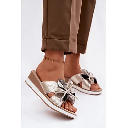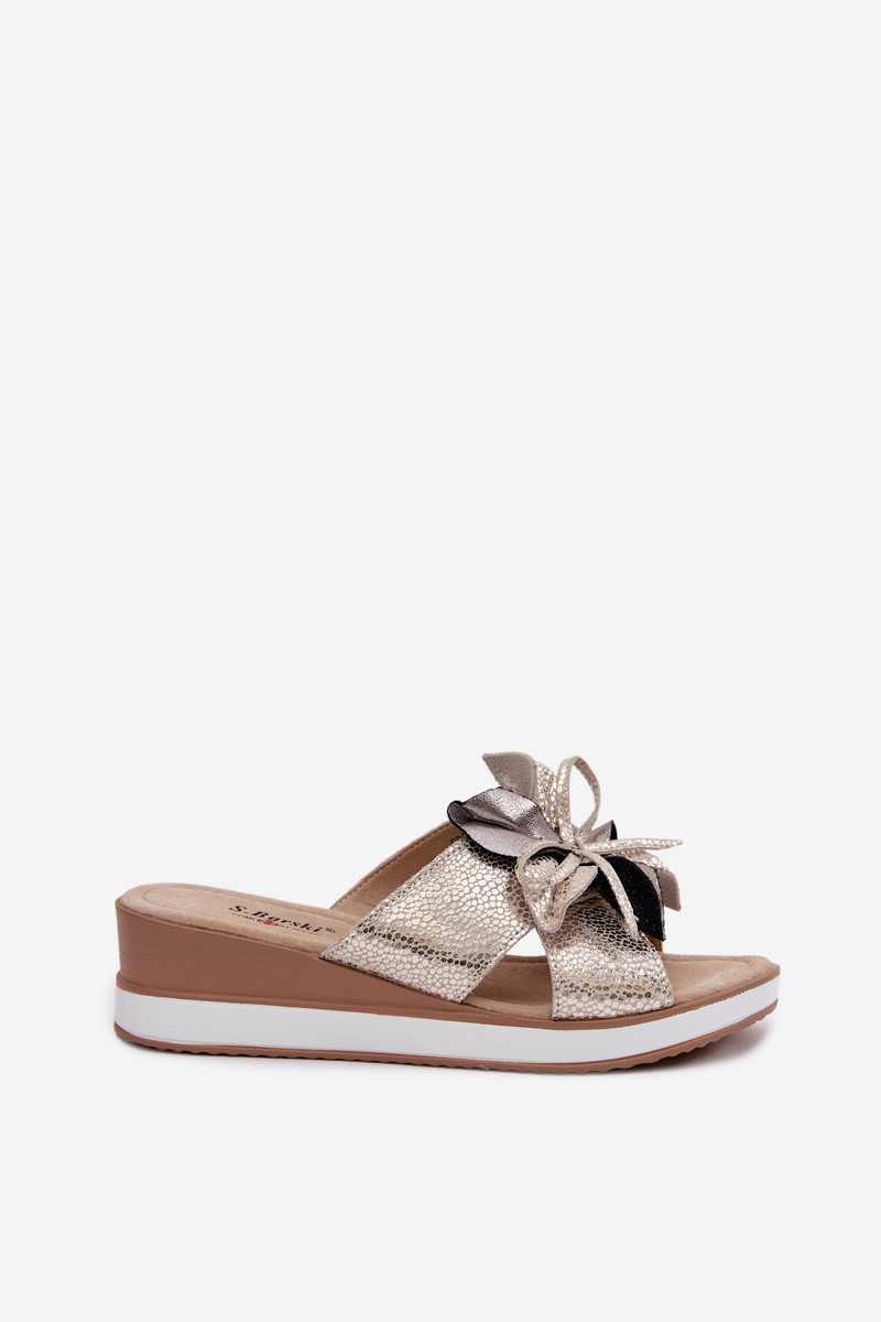 Kožené nazouváky na platformě s dekorativním květem S.Barski GR61-5989 Zlaté