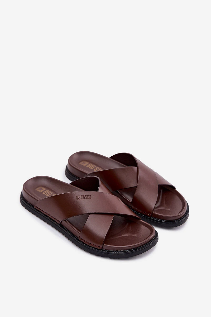 Kožené Pánské Pantofle Big Star model 22064040 Tmavě hnědé - Big Star Shoes