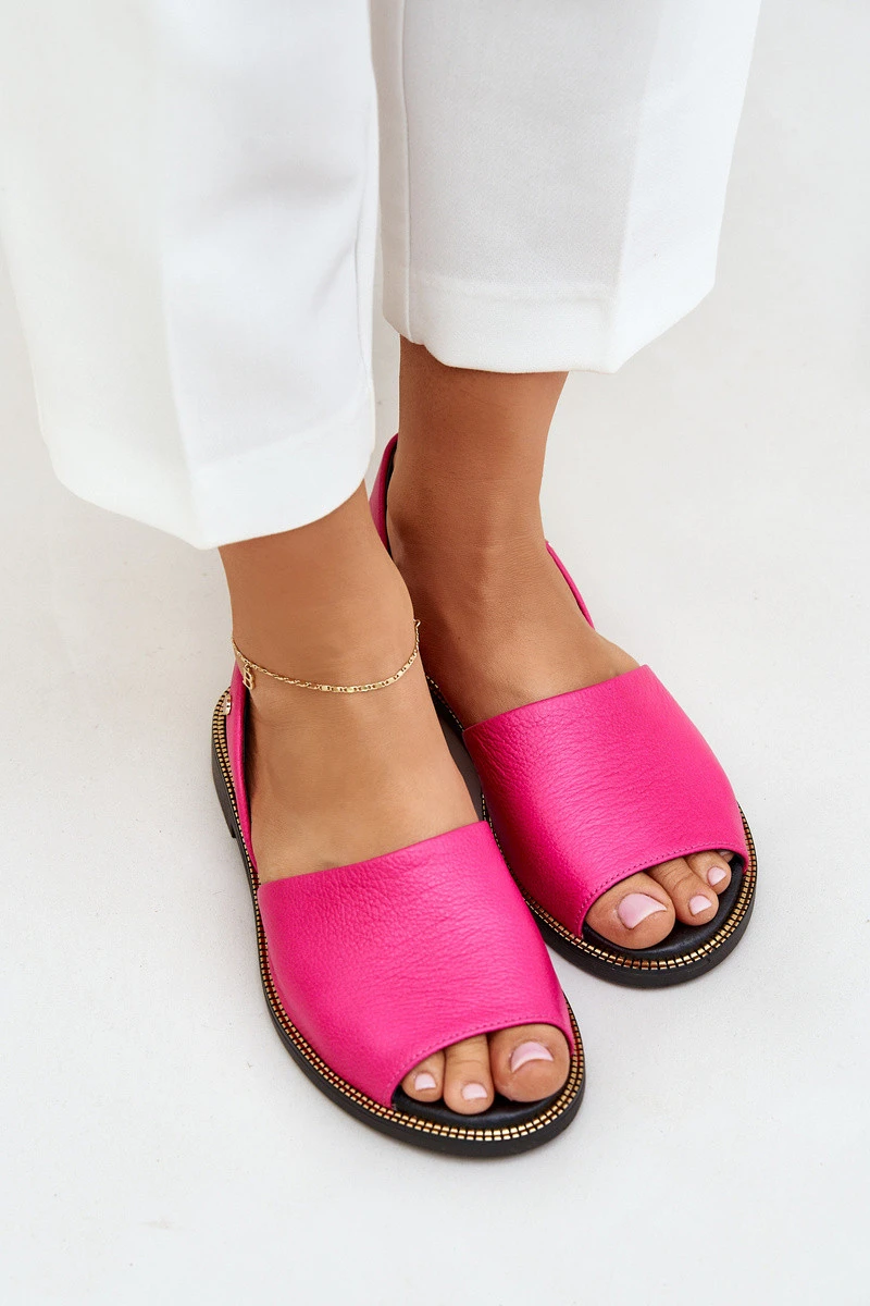 Dámské sandály byly vyrobeny z vysoce kvalitní přírodní kůže. Umístěné na ploché podpatku s ozdobami na podešvi. Sandály mají odkrytou patu a prsty. Měkká kůží vložka zajistí pohodlné nošení. Sandály jsou navlékací a zadní část lýtka je jemně zpevněná. Při výběru velikosti se řiďte tabulkou velikostí.
