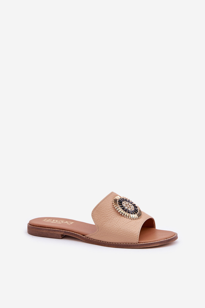Kožené Pantofle S Dekorací Na Plochém Podpatku Béžové Lewski model 21682238 - Boto