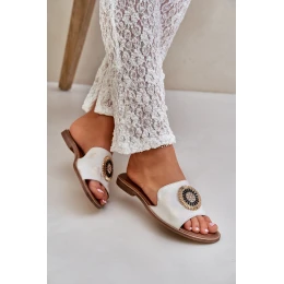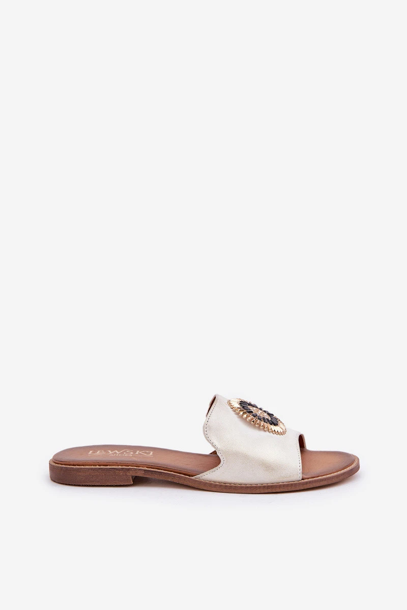 Kožené Pantofle S Dekorací Na Plochém Podpatku Zlato Ošoupané Lewski 3047/O