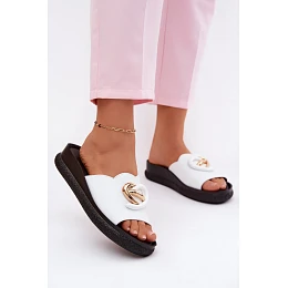 Kožené pantofle s ozdobným detailem model 22133599 Bílá - S.Barski
