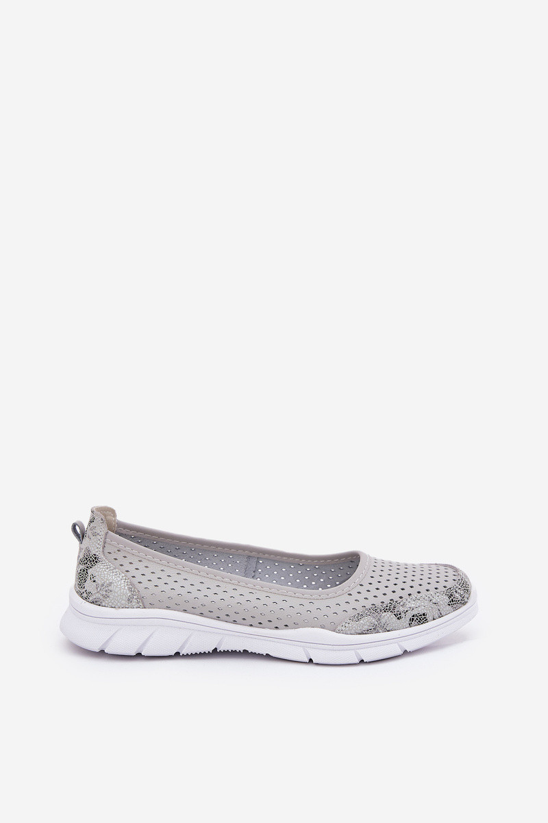 Kožené perforované baleríny model 21686558 šedé - VINCEZA
