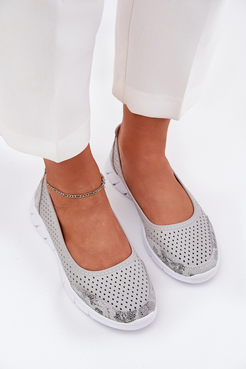 Kožené perforované baleríny Vinceza 95323 šedé