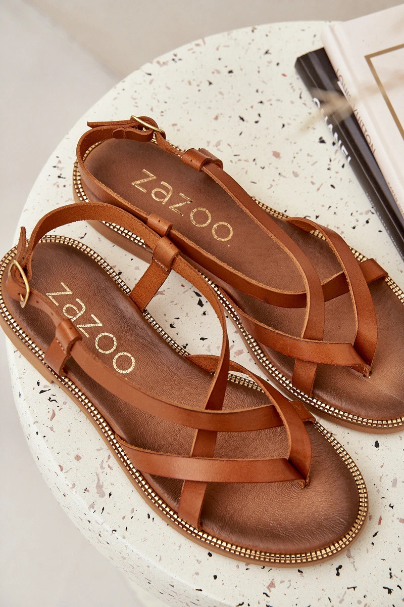 Přidání recenze k Kožené Plátěné Sandály S Propletenými Pásky Zazoo 40429 Hnědé
