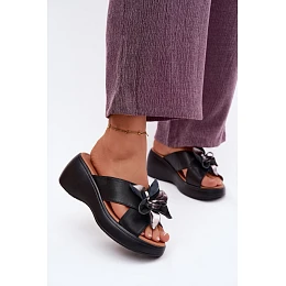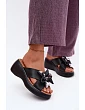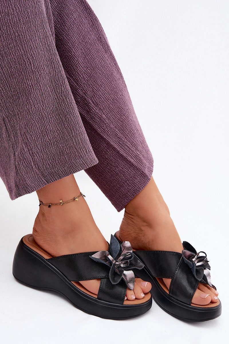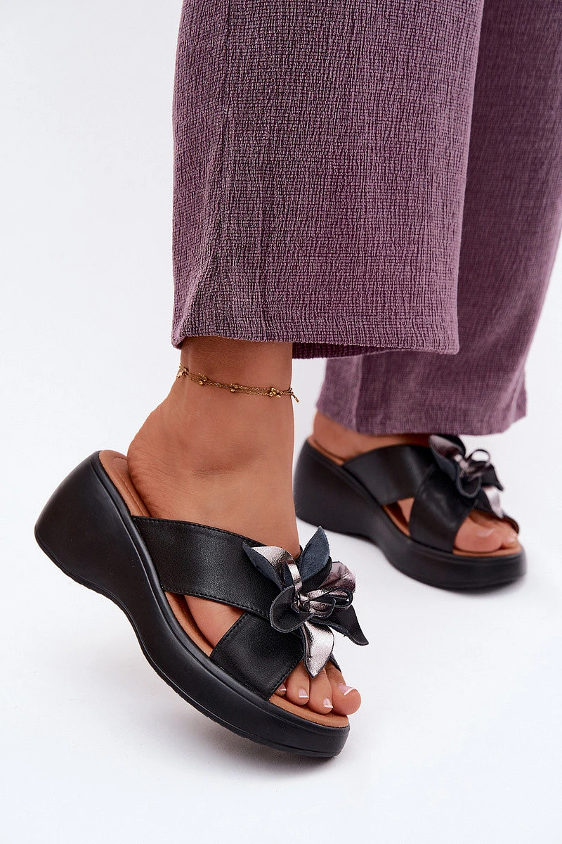 Kožené platformové pantofle s ozdobnou květinou Vinceza 41511 Černé
