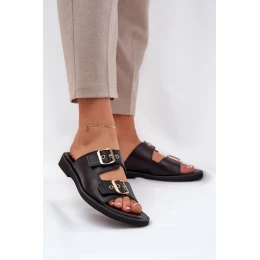 Kožené Ploché Pantofle S Přezkami model 21686300 Černé - Zazoo