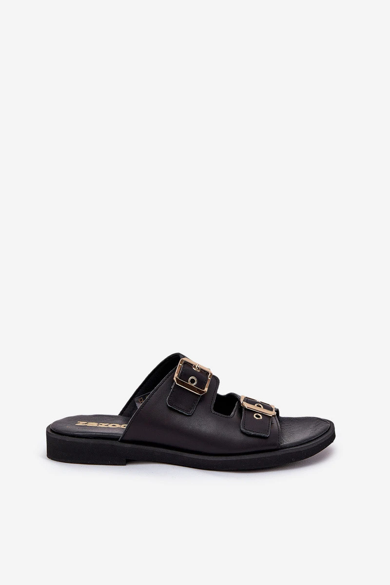 Kožené Ploché Pantofle S Přezkami Zazoo 3020 Černé
