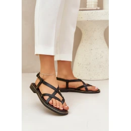 Přidání recenze k Kožené Ploché Sandály S Propletenými Pásky Zazoo 40429 Černé
