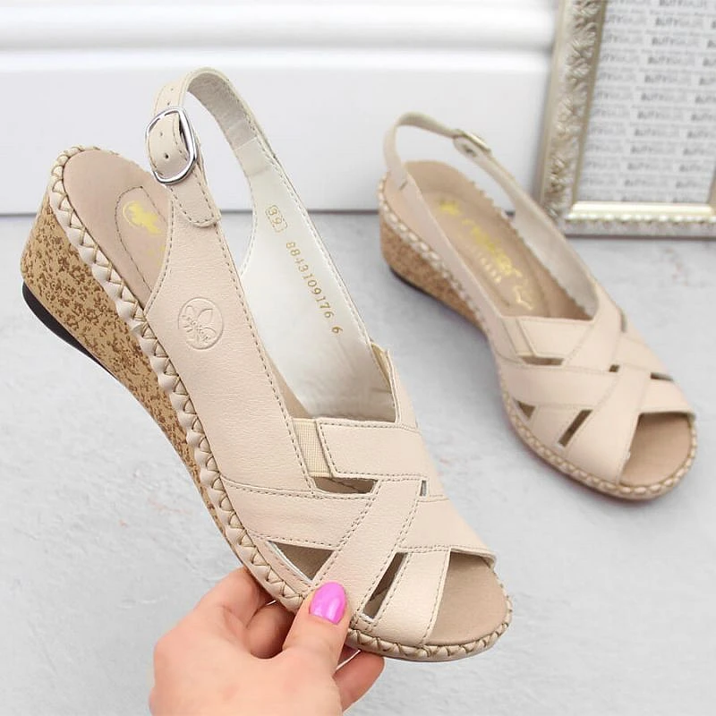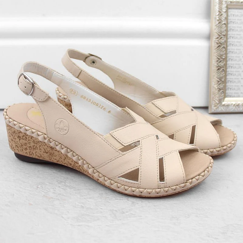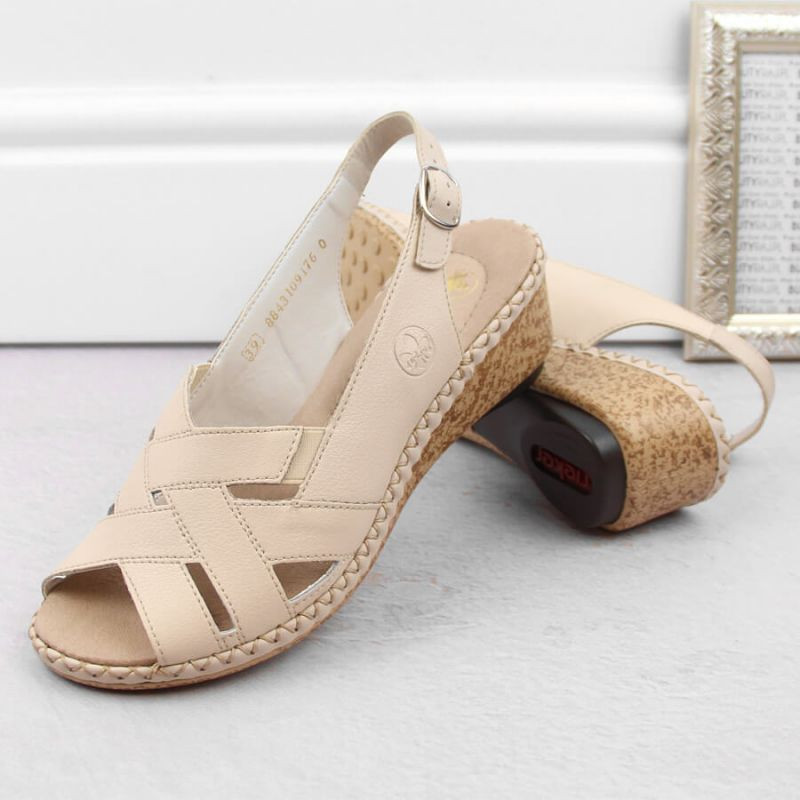 Kožené pohodlné sandály Rieker W RKR682 beige