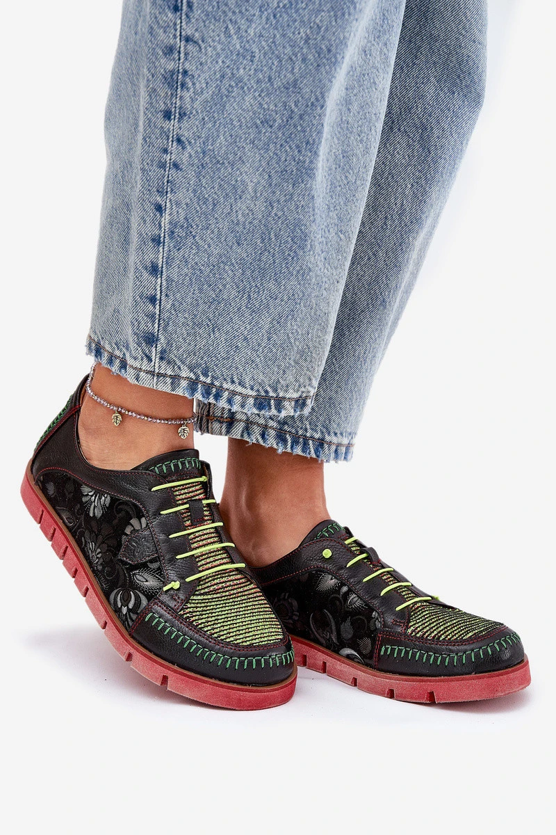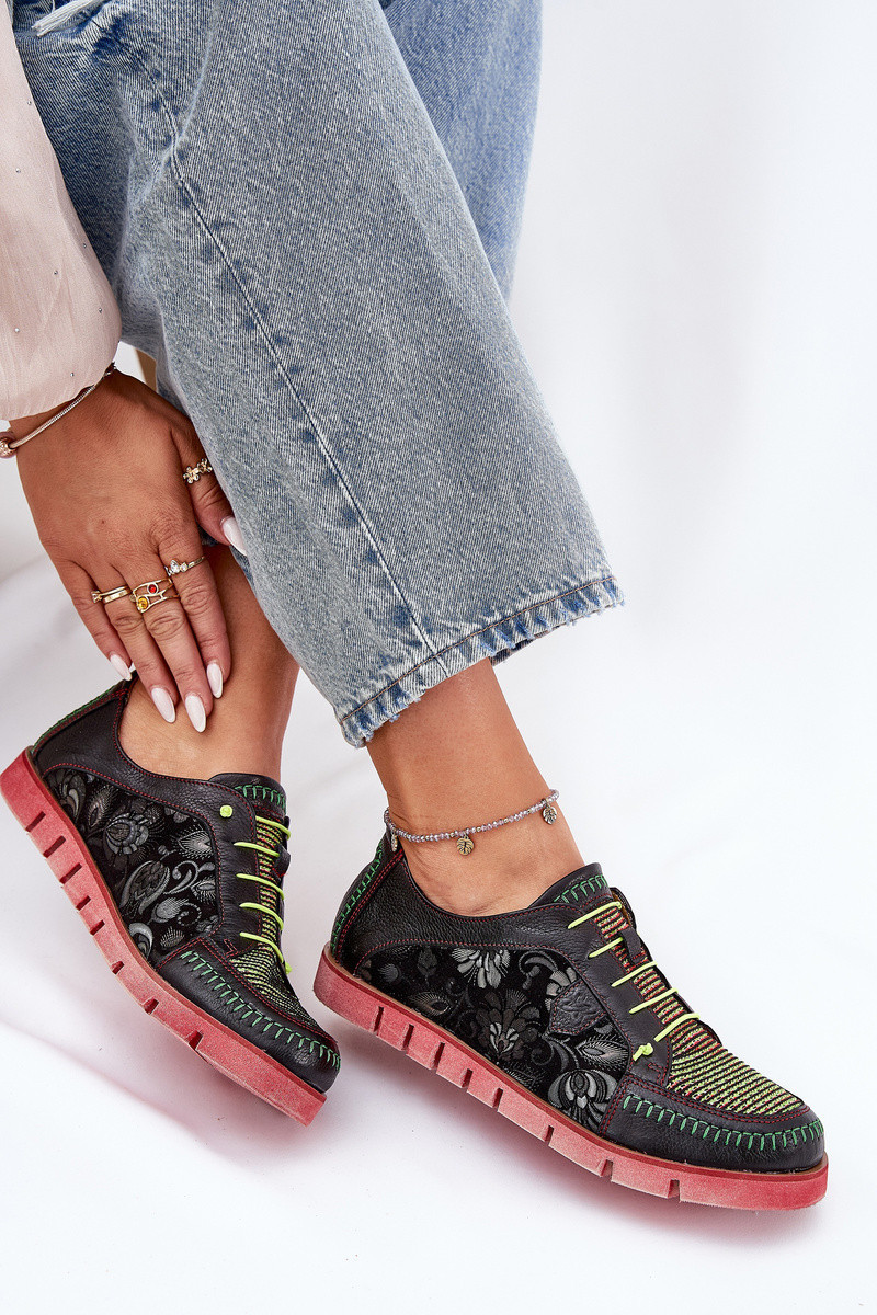 Kožené Polobotky Dámské Vzorované model 21691382 Černé - Maciejka