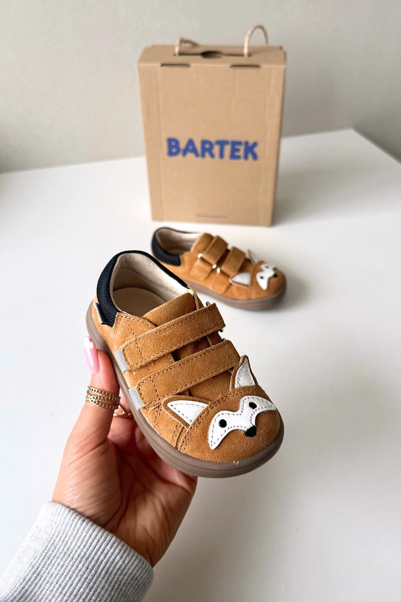 Roztomilé barefoot polobotky pro děti. Vyrobené z měkkého semiše a hladké kůže, zajišťují odolnost a pohodlí při každodenním nošení. Model barefoot podporuje přirozený vývoj dětské nohy díky širokému přednímu dílu a absenci zpevnění, což umožňuje noze pracovat přirozeným způsobem. Motiv lišky na svršku přidává šarm a povzbuzuje děti k jejich nošení. Zapínání na dvojitou suchou zip usnadňuje rychlé obouvání a přesné přizpůsobení noze. Při výběru velikosti se řiďte tabulkou velikostí.
