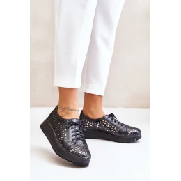 Dámské polobotky vyrobené z přírodní kůže, usazené na platformě pro větší pohodlí. Špičky jsou zaoblené. Svršek zdobený průsvitným vzorem, který jim dodává lehkost a styl. Ideální pro různé stylizace, tyto boty dokonale doplní každý šatník a zajistí módní a pohodlný vzhled na každý den. Při výběru velikosti se řiďte tabulkou velikostí.
