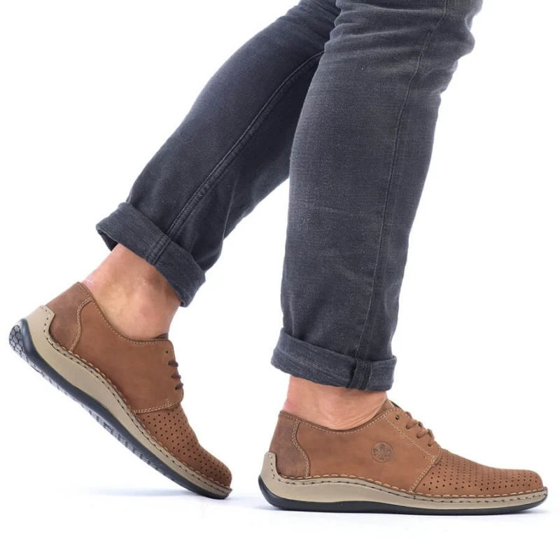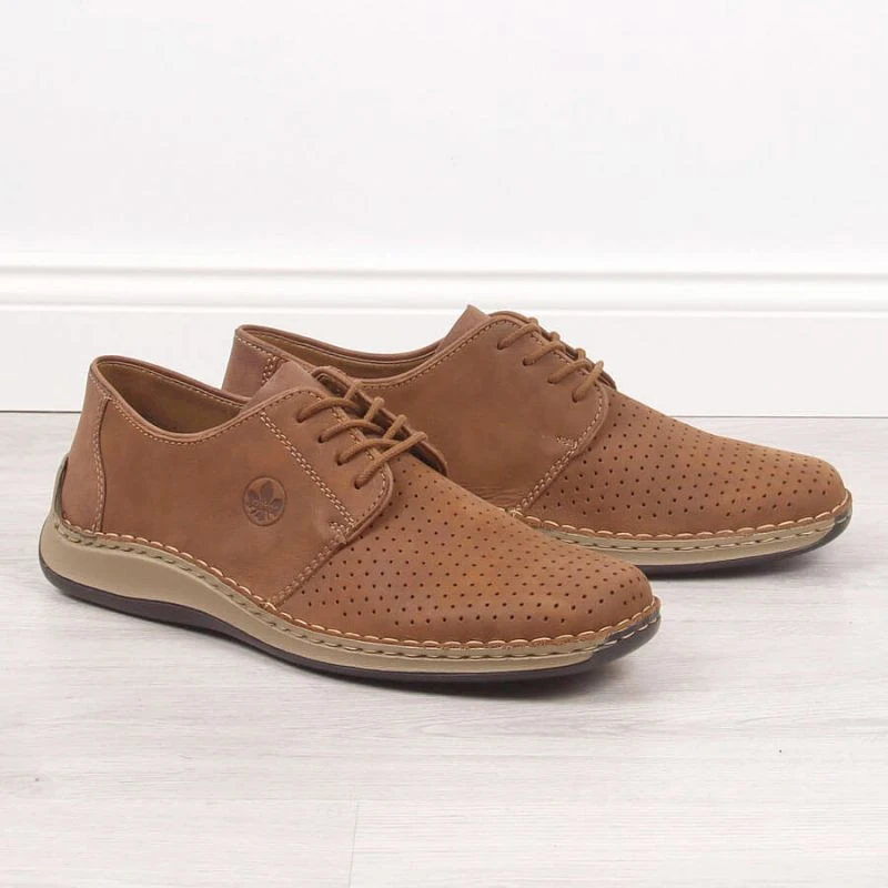 Rieker M RKR528 hnědá prolamovaná kožená polobotka