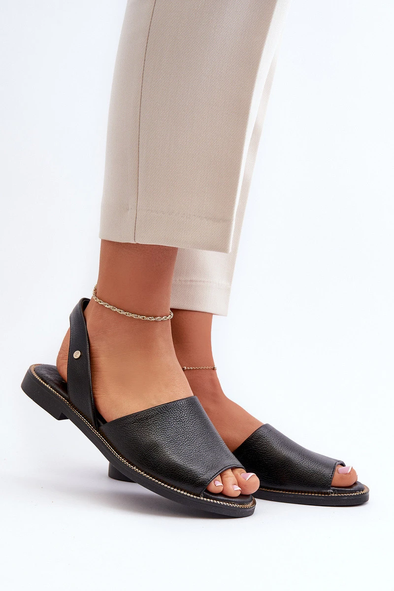 Dámské sandály byly vyrobeny z vysoce kvalitní přírodní kůže. Umístěné na ploché podpatku s ozdobami na podešvi. Sandály mají odkrytou patu a prsty. Měkká kůží vložka zajistí pohodlné nošení. Sandály jsou navlékací a zadní část lýtka je jemně zpevněná. Při výběru velikosti se řiďte tabulkou velikostí.